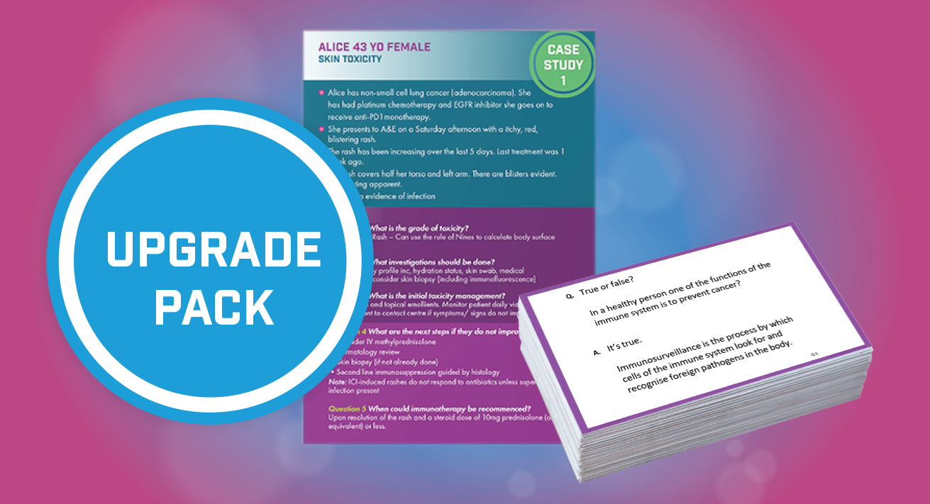 The Immuno-Oncology Game is intended to build awareness, knowledge and understanding among healthcare professional of IO. It demonstrates what IO is, and how it differs from other interventions. The game will help clinicians to develop an understanding of areas including: